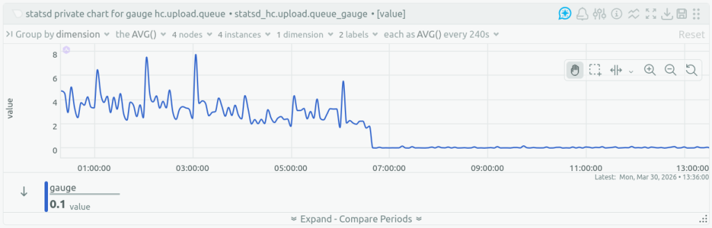 The queue of ping bodies waiting to be uploaded to object storage shrank: